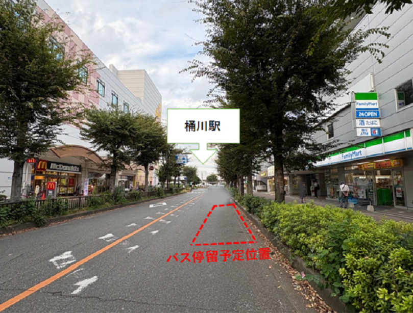 | 集合場所及び出発時刻 | 次のどちらかをお選びください。 ①桶川駅(西口) 12時15分 ②川島町役場(南側駐車場) 12時45分 ※出発時刻の5分前にはお集まりください。 |